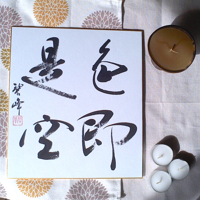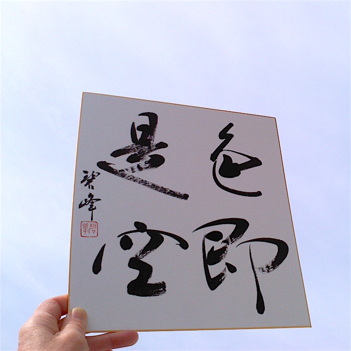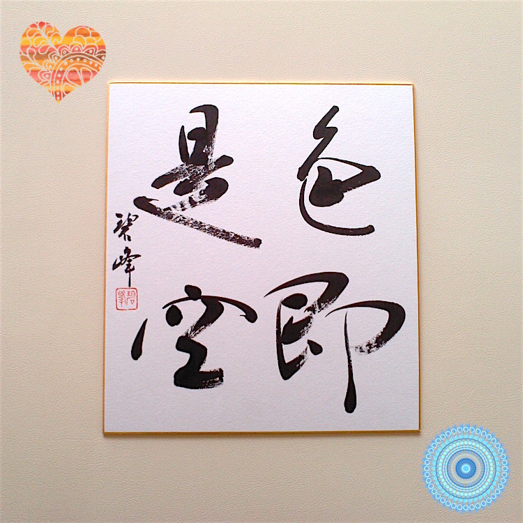 色即是空 空即是色と続いていき、いろいろな解釈・深い意味があり、簡単には説明できませんが、今回は、この言葉から受ける柔らかな面を書にしていただきたいと思いました。