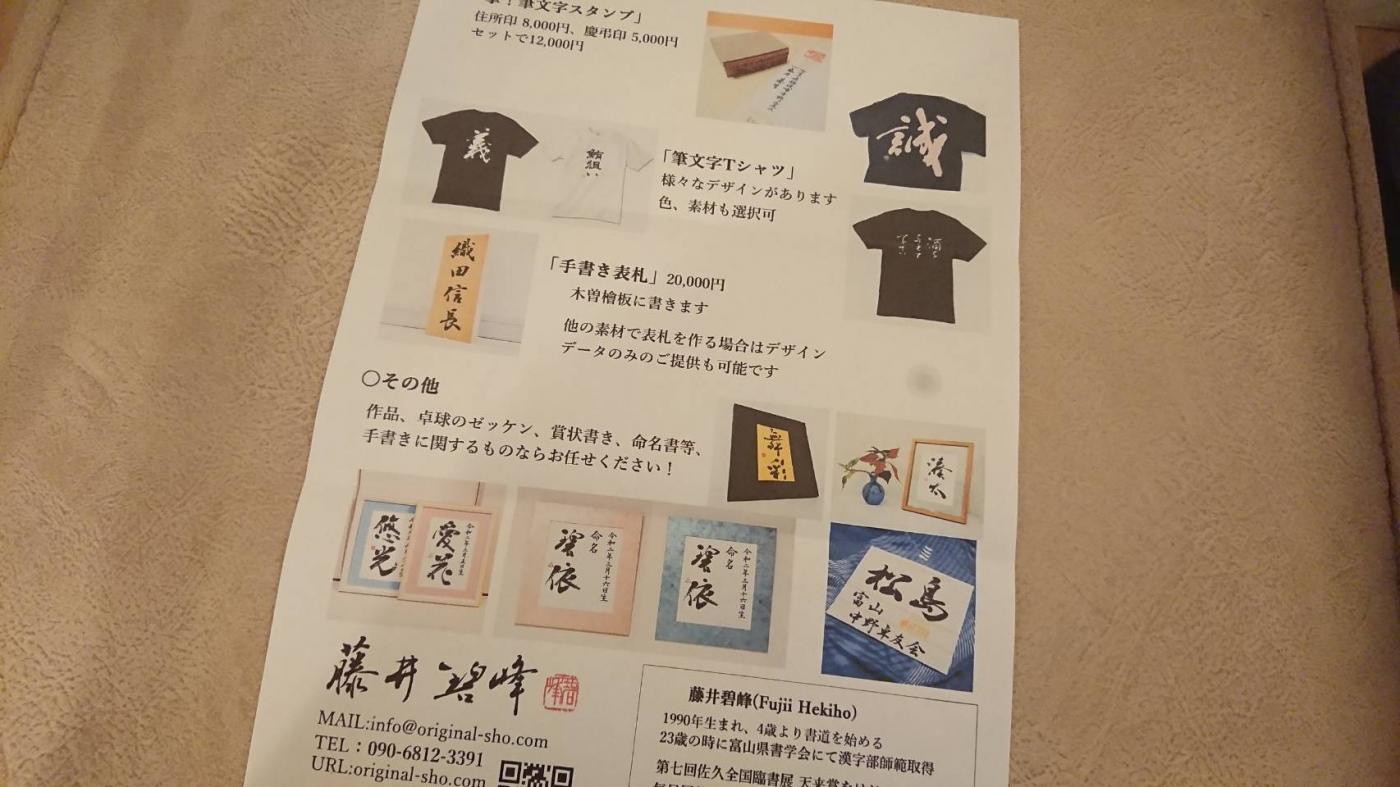 書道家『藤井碧峰』の命名書
