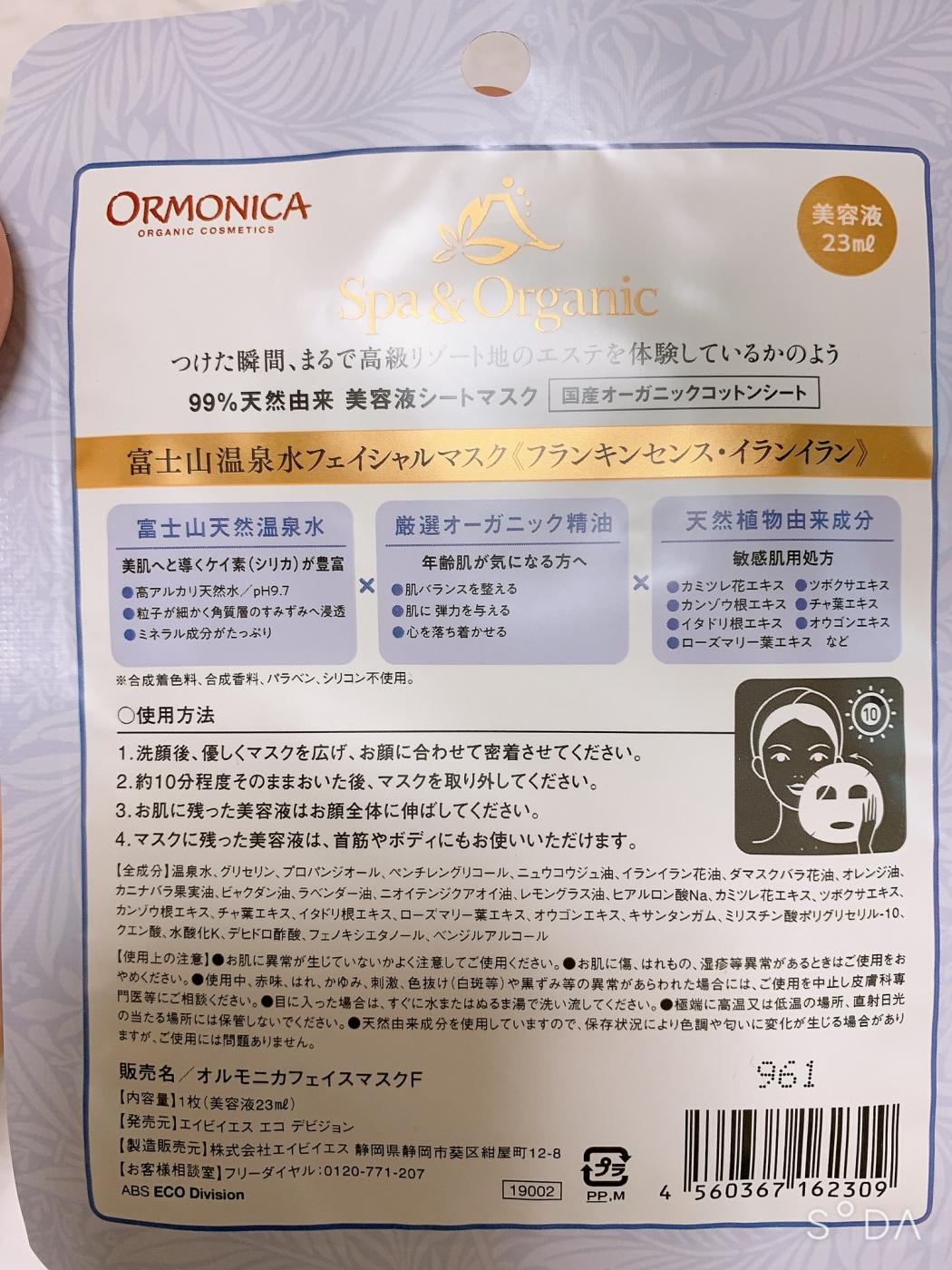 アロマに癒されたい方におすすめシートマスク!オルモニカ 富士山温泉水フェイシャルマスク