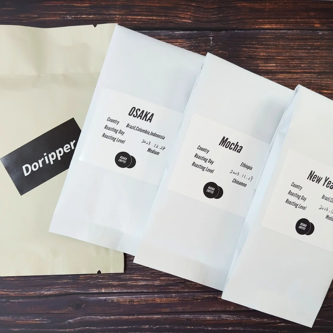 今回は、 MOKA、NEW YESAR、OSAKAの コーヒー3種類とドリッパーがセット。 1人分のドリパーがつ...