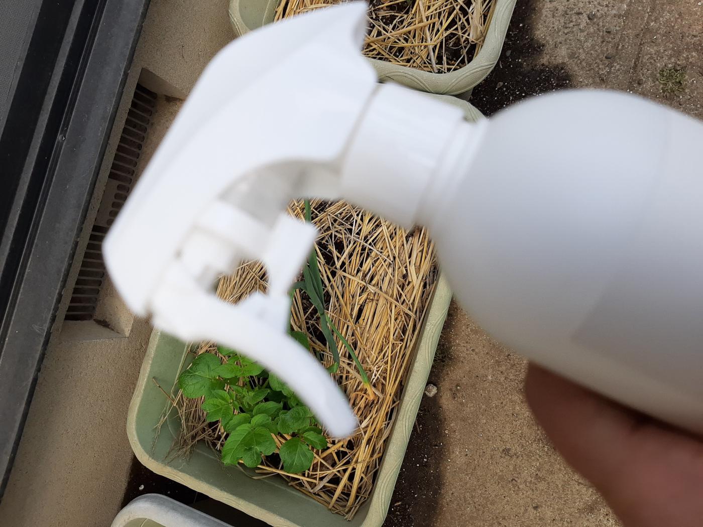 夏野菜の準備しながら、苗を守るためにシュッとスプレーします。
