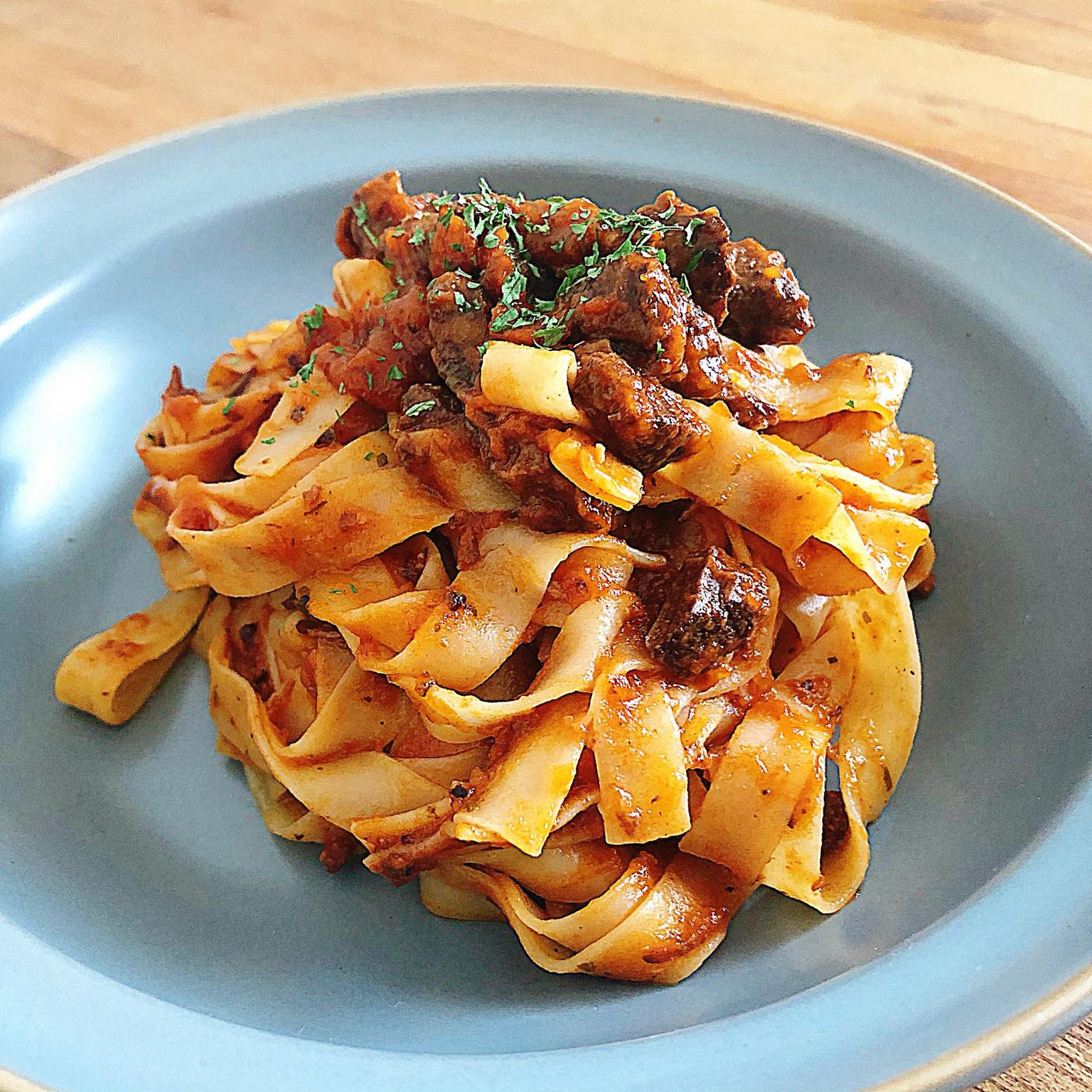 牛肉ごろごろの牛頰肉のミートソースパスタレシピ!|モニター まるまるこさん