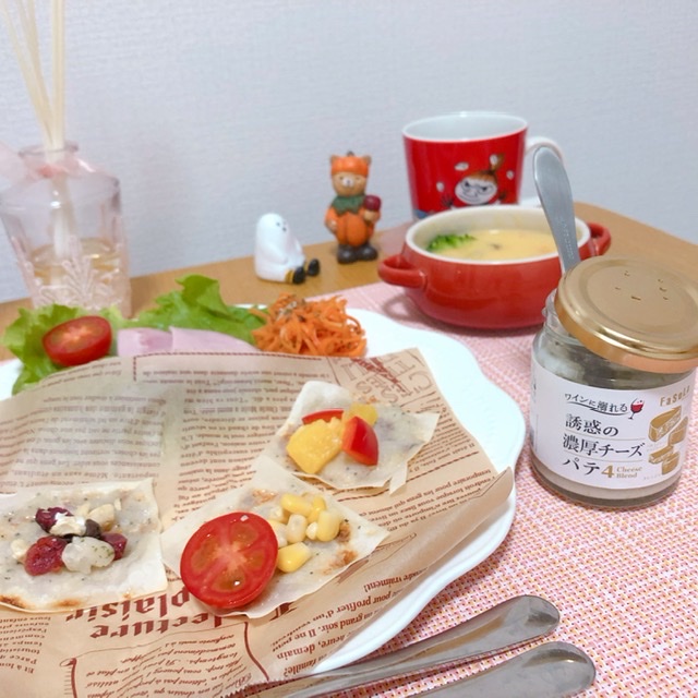 今回は、濃厚チーズパテを使って、餃子の皮の簡単ピザを作りました!