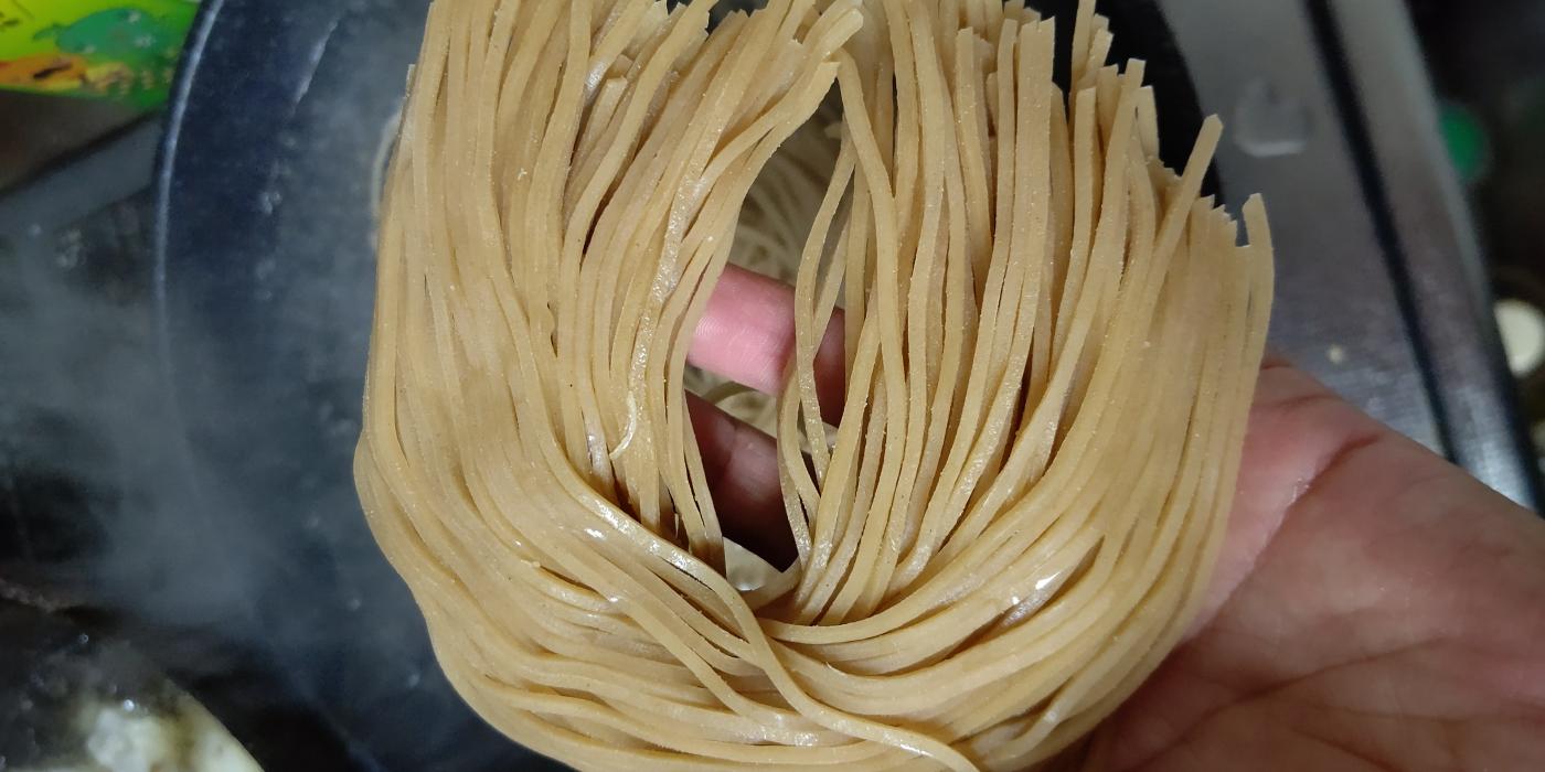 パスタにつかったり、焼そばみたいにしたり、ラーメン風にしたりと、アイデア次第でいかようにも食べられてしまうのも魅力的。茹で上がった麺は、茹でる前からは考えられないおいしさ。ぜひためしてほしいです。