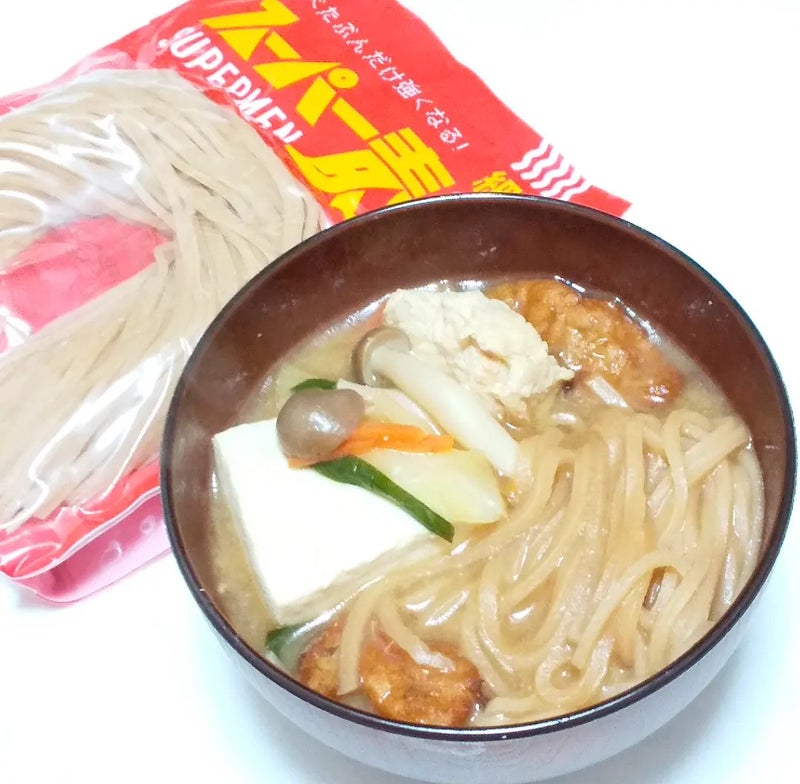 スーパー麺 細麺 6食 グルテンフリー 玄米麺で具だくさんの味噌鍋を作ったよ!|モニター にゃんこさん