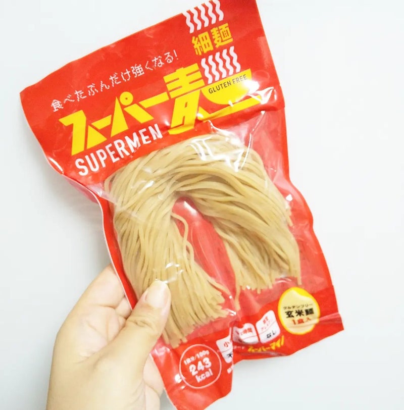 スーパー麺は、グルテンフリーの玄米麺です。最近、話題で注目されているグルテンフリーは食事の時に気にしている人も多いですね。