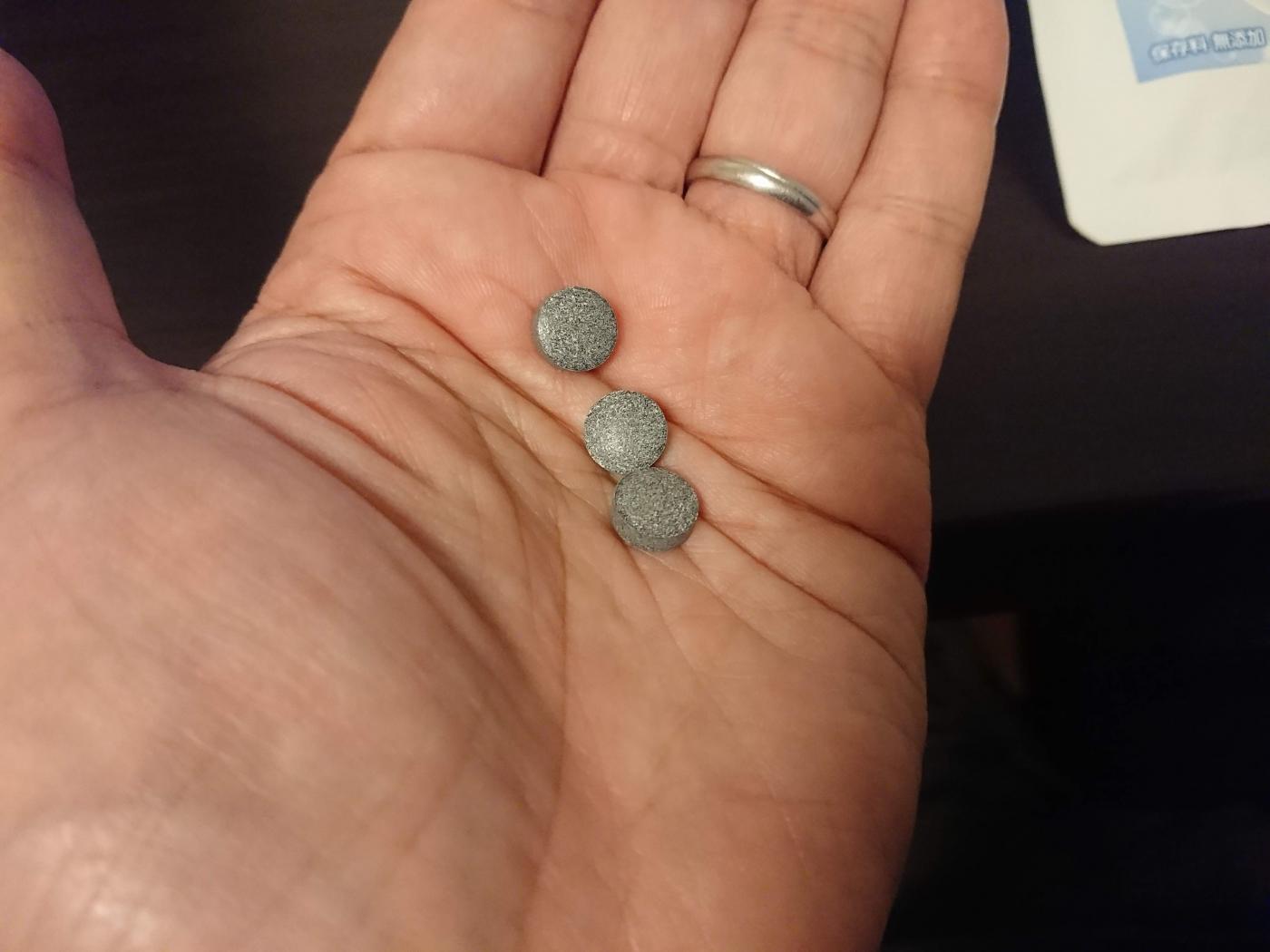 エチケットミントというサプリメントを試してみました。 袋を開けるとその粒の色にびっくり!黒い・・...