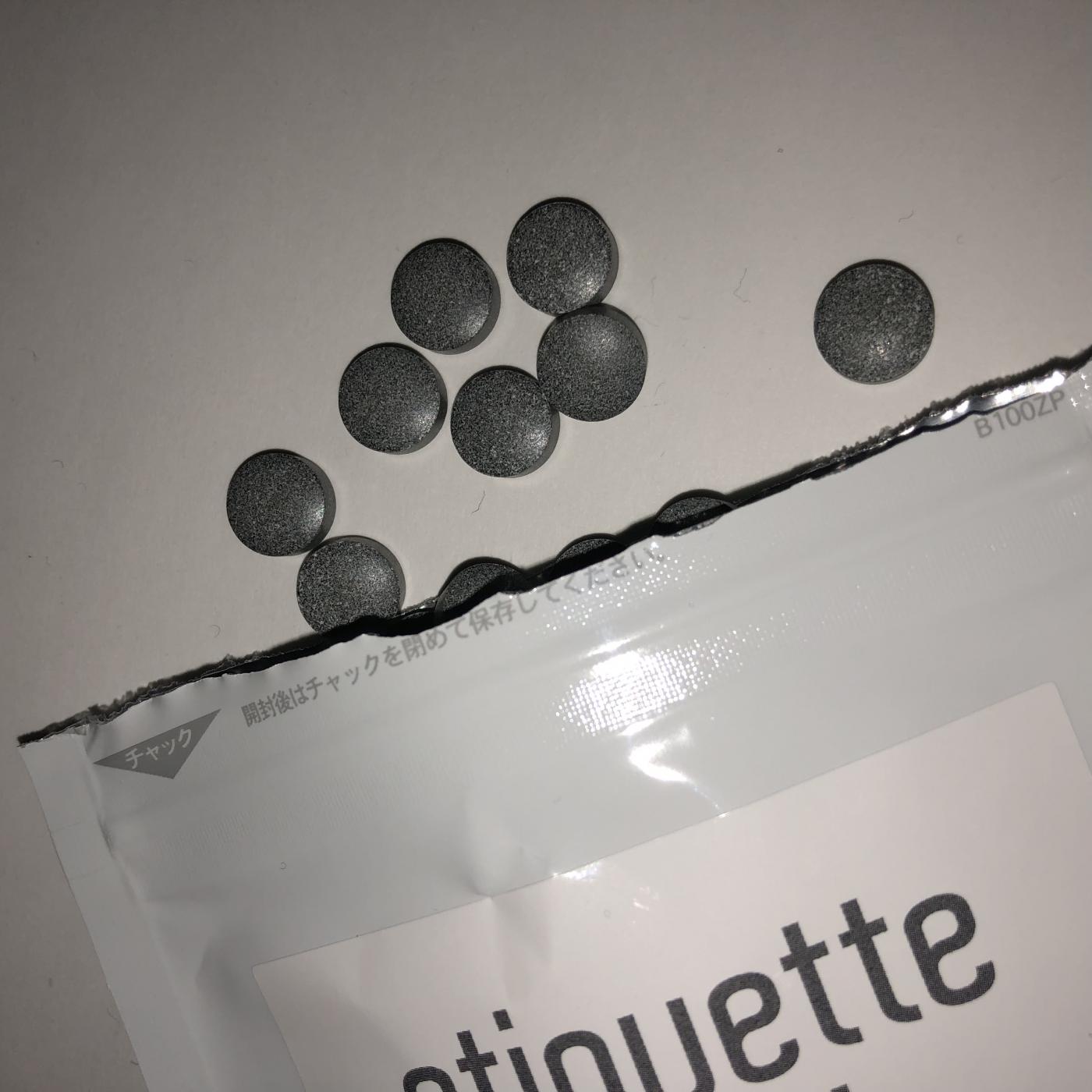 エチケットミントというサプリメントを試してみました。 袋を開けるとその粒の色にびっくり!黒い・・...
