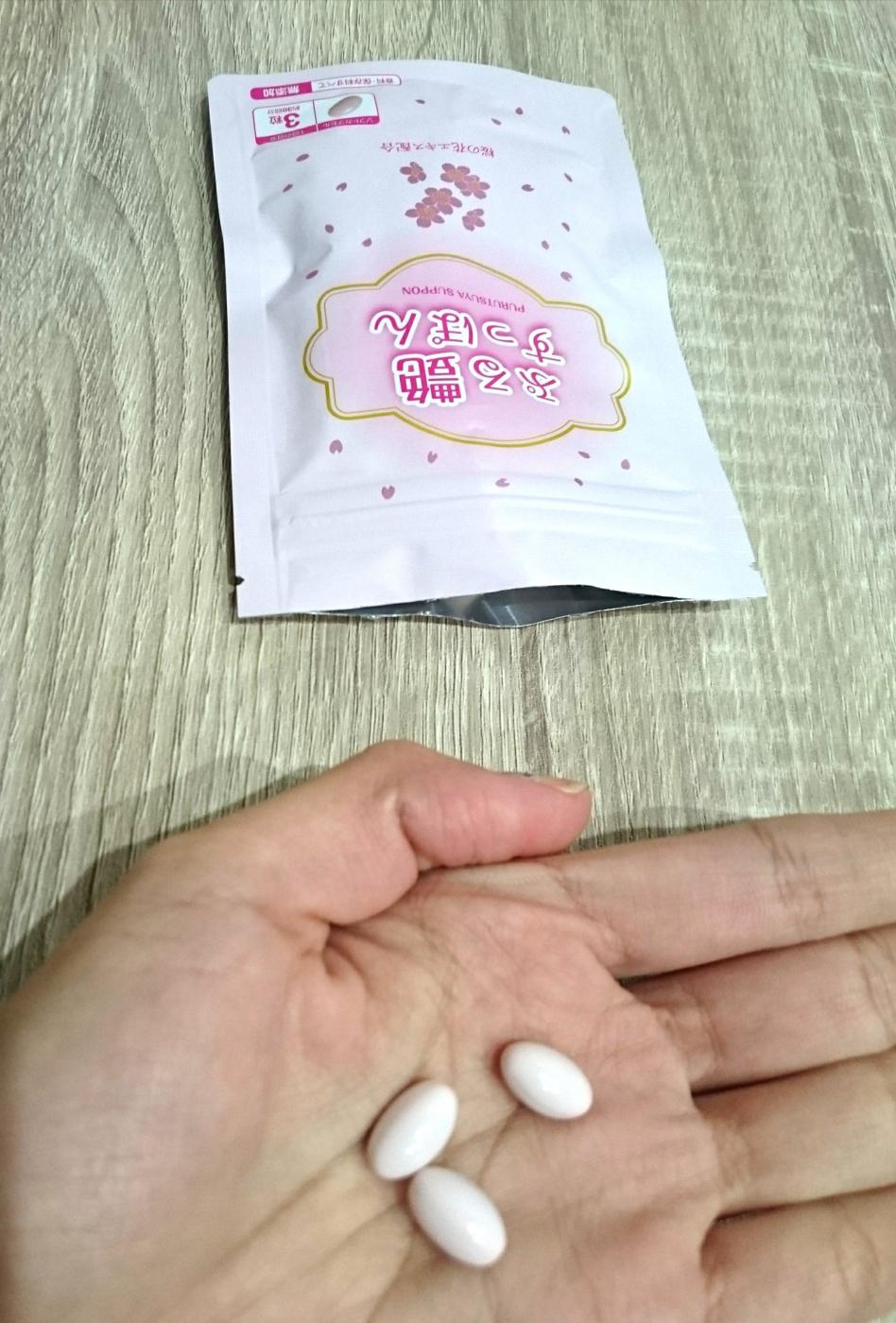 この可愛い色の粒にすっぽんと桜の花エキスが入っていると思うととても手軽です。