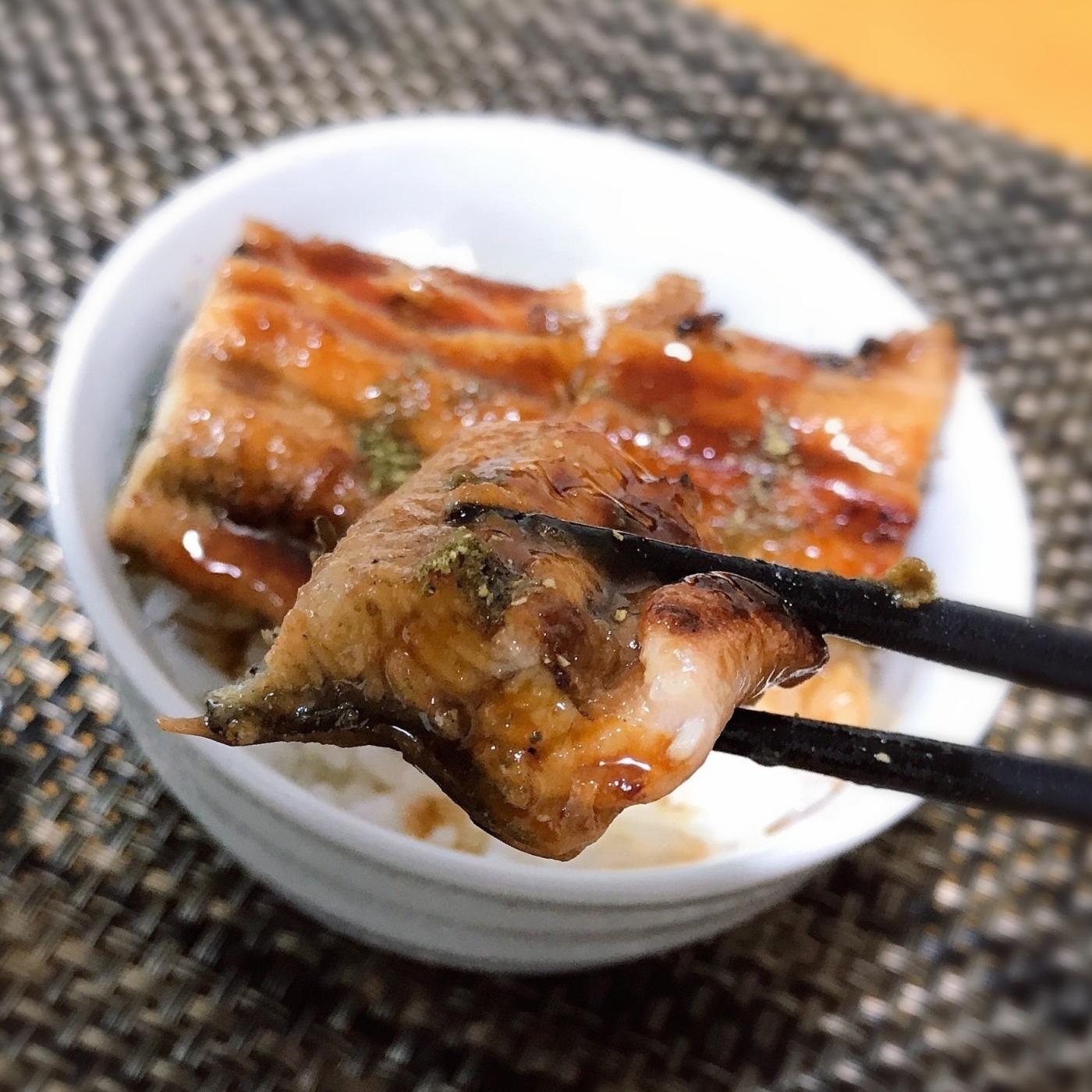 美味しそうな香り〜まずは一口パクリ。炭火焼の香ばしい香りが口いっぱいに広がります。柔らかな身と甘いタレが合わさって、お店で食べているかのような美味しさ。臭みが全くなくて冷凍とは思えないくらい身が柔らかく、炭火焼の香ばしさがふわぁ〜っと広がります。