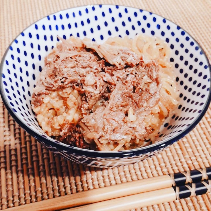 すき焼き丼の方にはこんにゃくなどやネギなども入っており、本格的なすき焼きって感じでした。