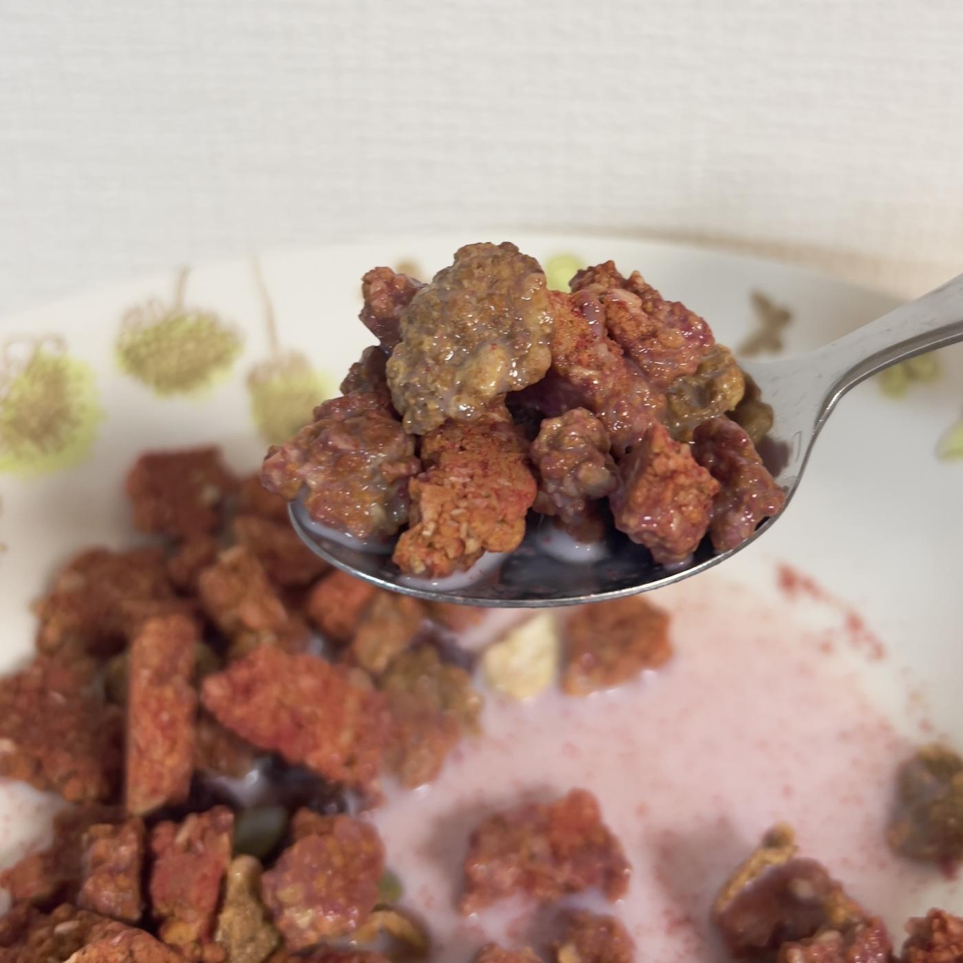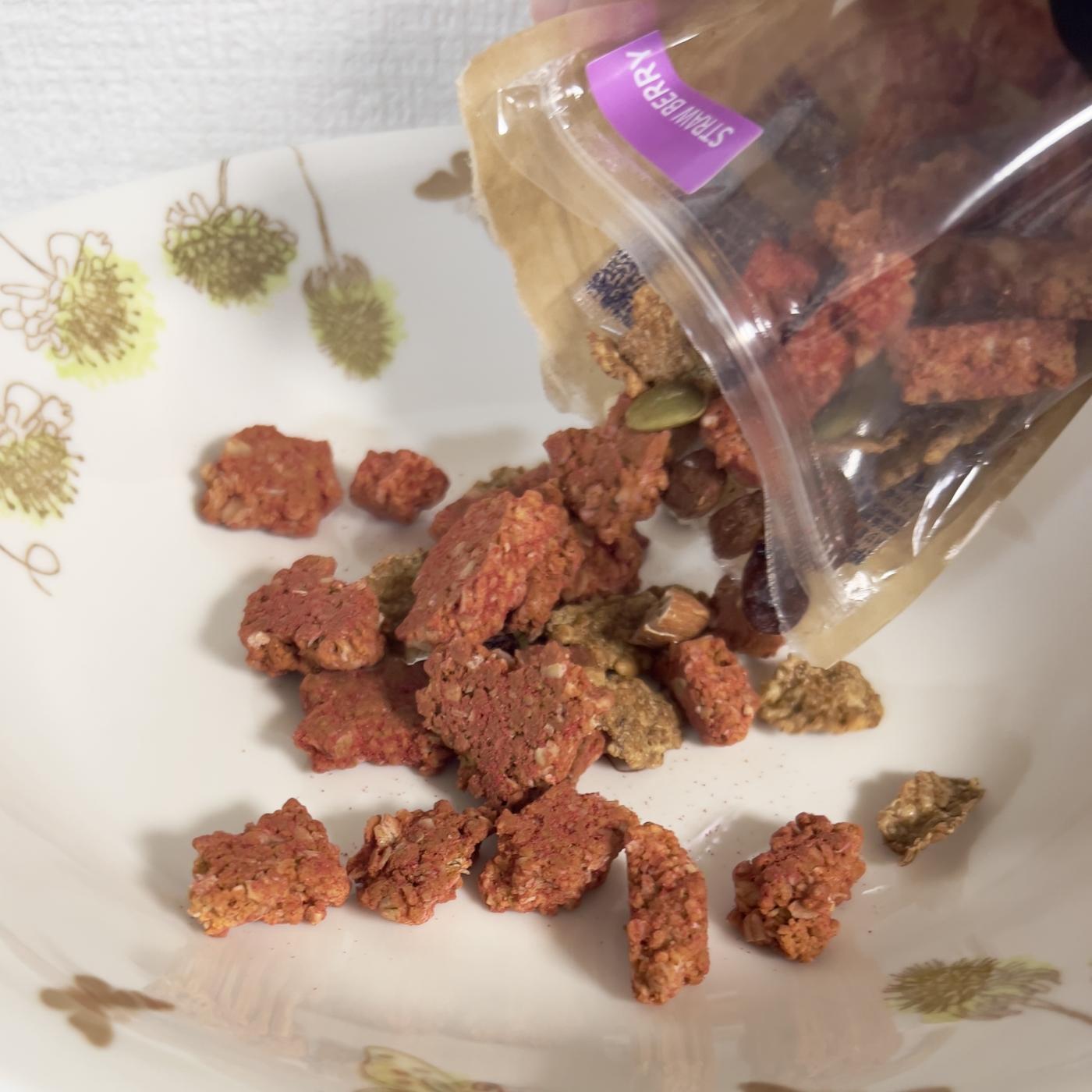 たくさんのドライフルーツやナッツが入ったグラノーラ。シリアルも塊になっていてつまんで食べやすいで...