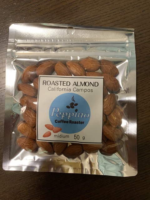 焙煎の仕方等で差が出てくるのでしょう。ペッピーノコーヒーさんのコーヒーロースターでこんがりと焼きあがったカリフォルニアアーモンドが届きます。