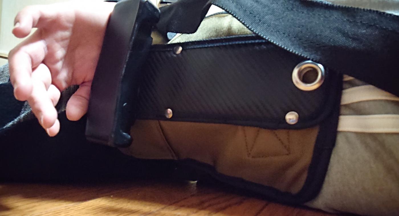 袋から出すとベルトが付いていてバックルが2つ付いています。