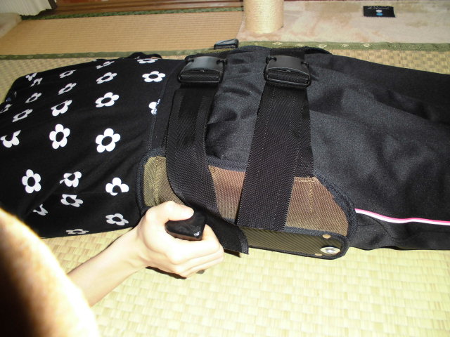使い方は簡単です。上部のベルトを調節しながら装着し、グリップが両側の横にくるようにします。