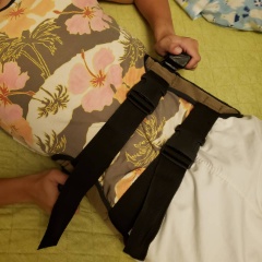 装着はとって簡単で、腰に巻いて寝転ぶだけです。