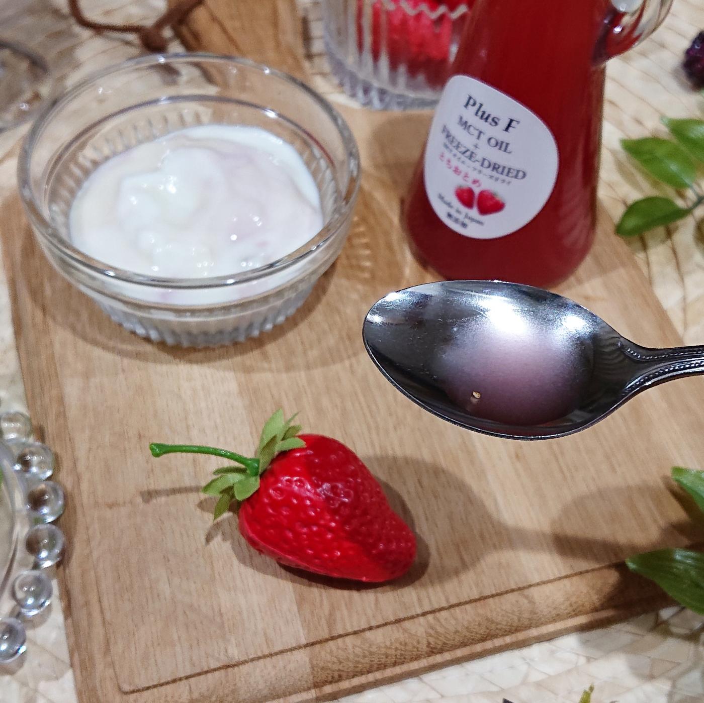 ヨーグルトにMCTオイル+F とちおとめをトッピングすると