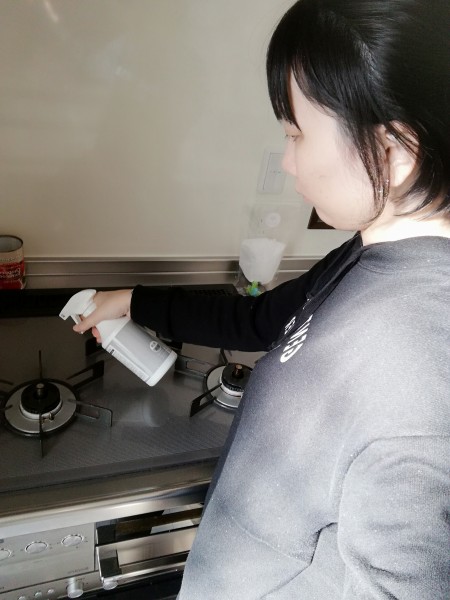 そんなコンロも特許水の洗浄・除菌スプレー”W+(ウォータープラス)”500mlでさっとスプレーしました