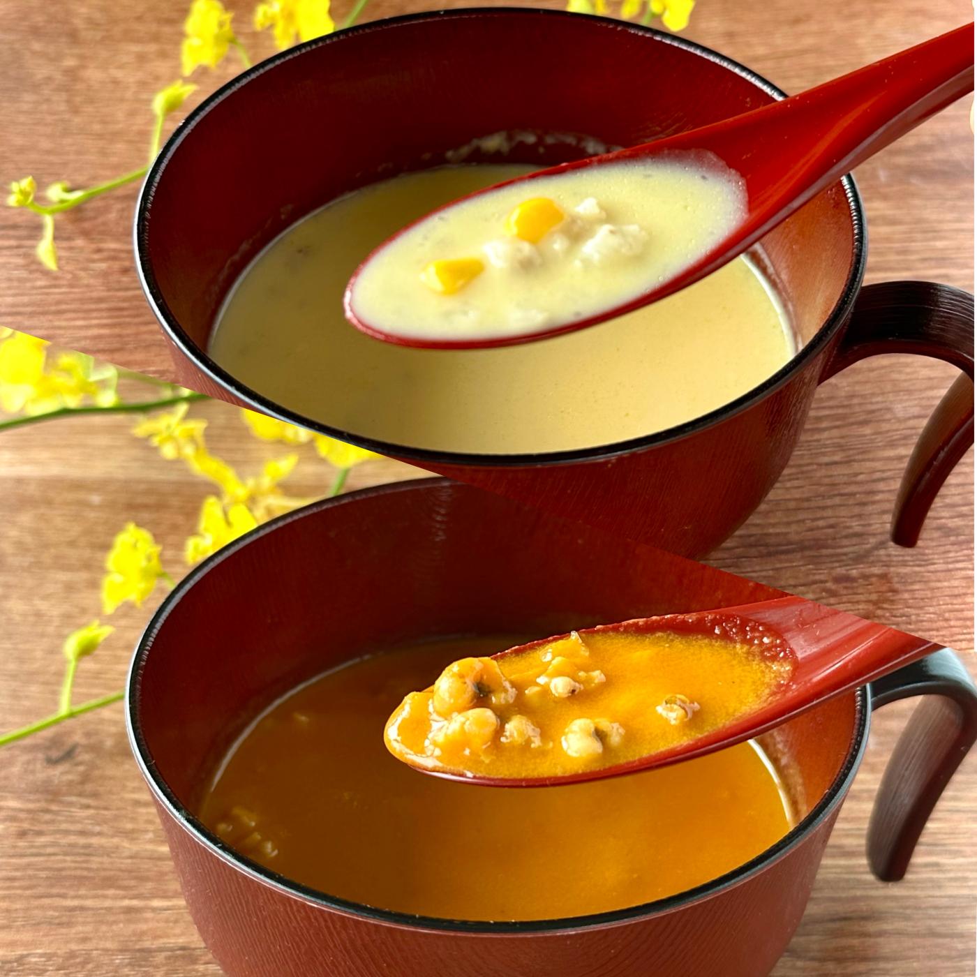 こちらのスープは素材の味が引き立つ優しい味わいで、中でも「コーンスープ」はまろやかで飲みやすく、ハトムギのつぶつぶ感がほどよいアクセントに