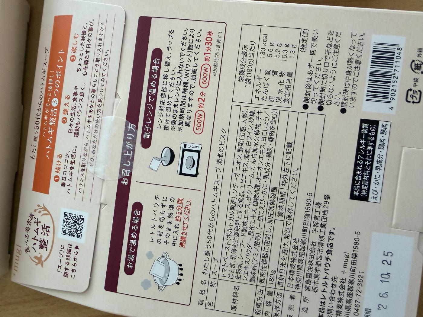 コーンスープも味自体は美味しかったのですが、個人的にはハトムギが入っていない「スープだけ」バージョンもあったら嬉しいなと感じました。
