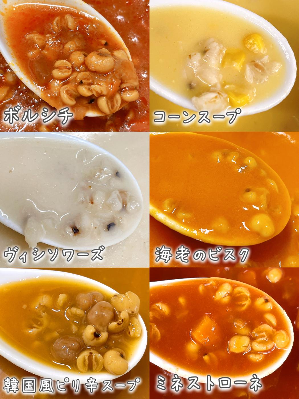 ハトムギのおいしさ溢れるバラエティ豊かな6種類のスープ。