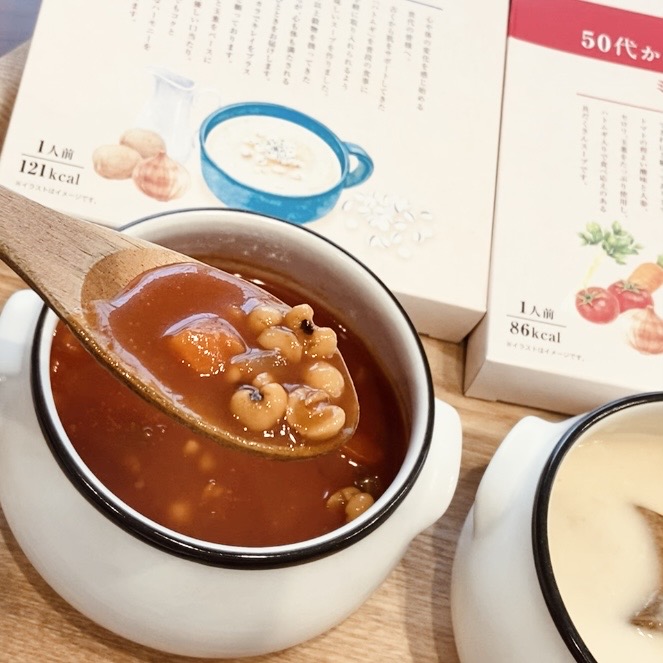 食べ比べを楽しみながら健康的な食事ができる「わたし整う50代からのハトムギスープ」のレビューです