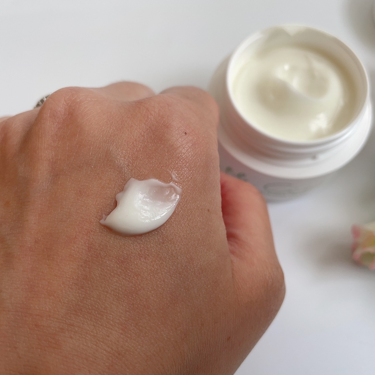 蓋を開けたときの印象は、白いこっくりとしたクリーム!
