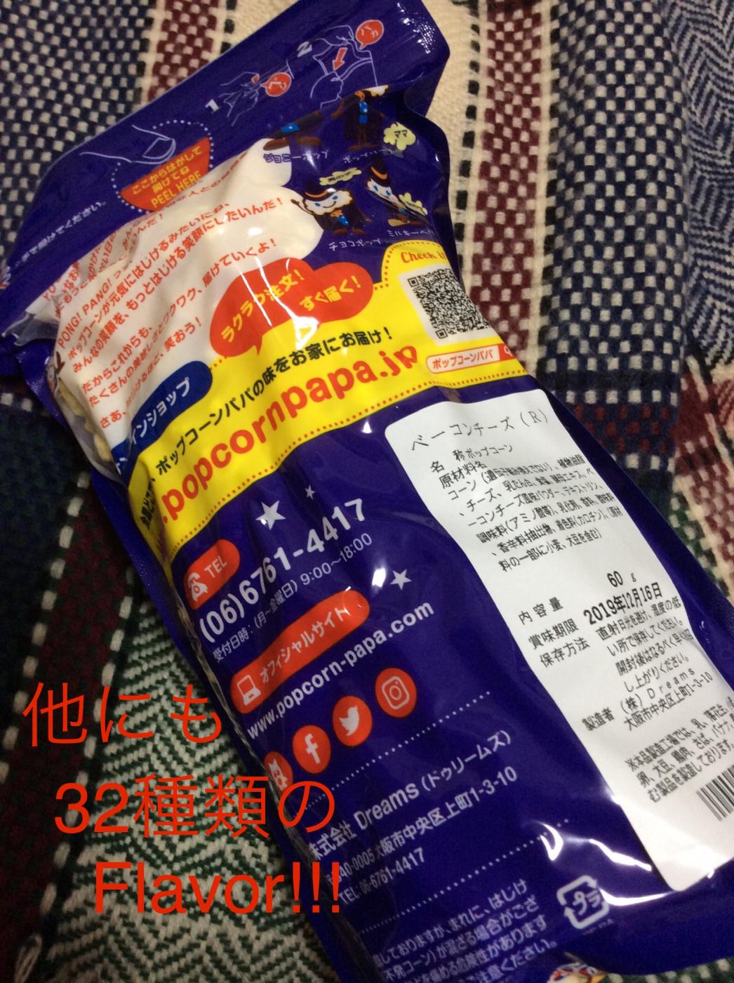 ポップコーンパパのポップコーン。 最高です! 今回はベーコンチーズ味をいただきました。 よくス...