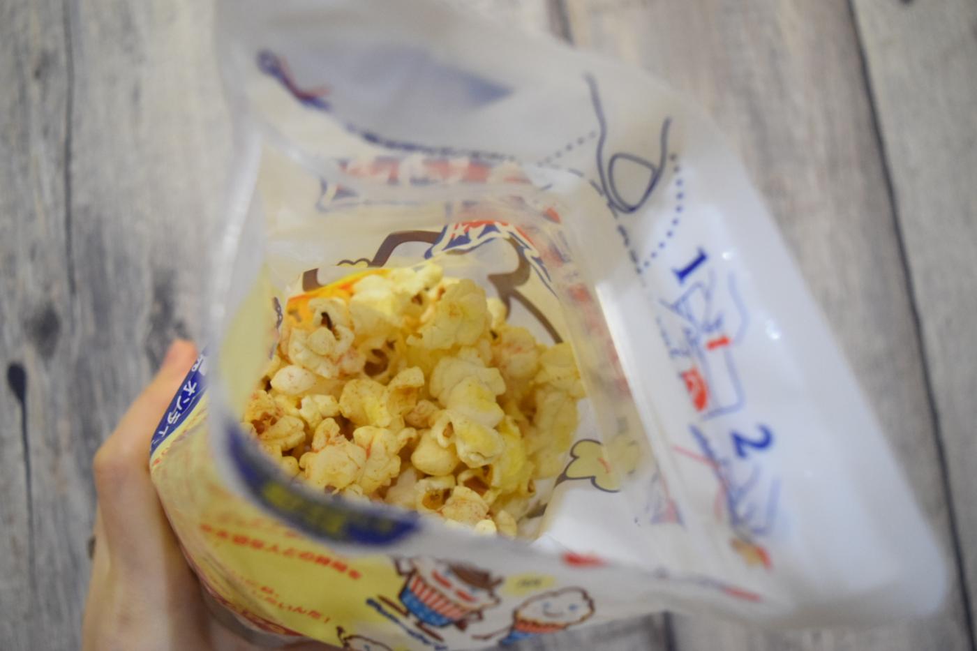 大好きなポップコーン!待ちに待ったポップコーン♡おやつ食べるならポップコーン!ってぐらい好きで食べてます。ポップコーンと一緒に入っていたチラシには、たくさんの味が!あまい系からおつまみ系まで♡しかも大阪セットとして、たこやき、うめかつお、キャラメルのセット売りがあるそう!全部美味しそう!というか、みんな好きな味!こんなに豊富な味付けは初めてみて、食べたことないものもあったので是非食べてみたいと思いました。普段は、自分でフライパンにポップコーンの素をいれてポンポンして出汁醤油で味付けしてます。今回久しぶりに市販のポップコーンを食べました。第一印象、紅しょうが?!おもしろい!慣れたら美味しい!って感じで食べてました。ただ、食べていくにつれ、しょ辛い。普段自分で作って自分好みだからか、塩っぱく連続しては食べれませんでした。紙コップ1杯分も食べきれませんでした。もう少し味付けをもう少し控えめにする方がいいと思います。なんなら、味控えめのポップコーンに、おいたして味をつけれるように付属品をつけるとより一層いいと思います。