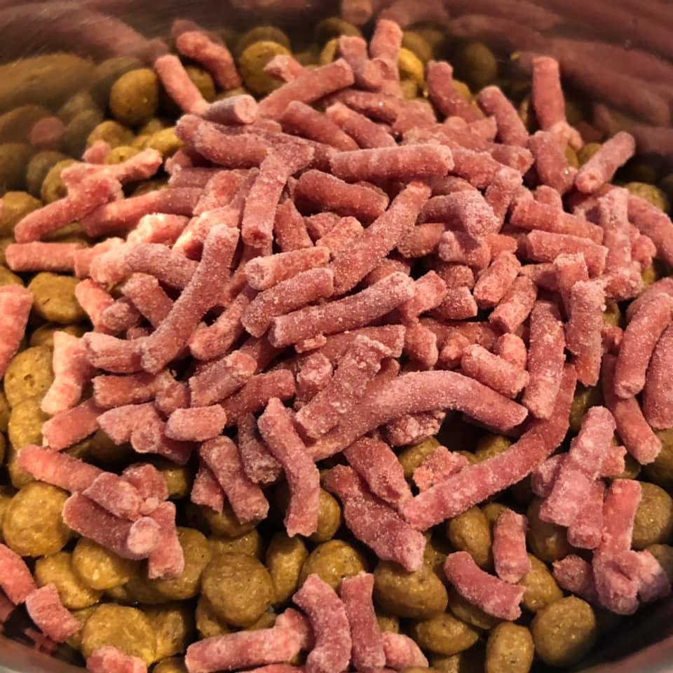 最初は、生肉のままあげて大丈夫なのかな??病気持ちだし…少し戸惑ったけど生肉のまま食べさせているよ。