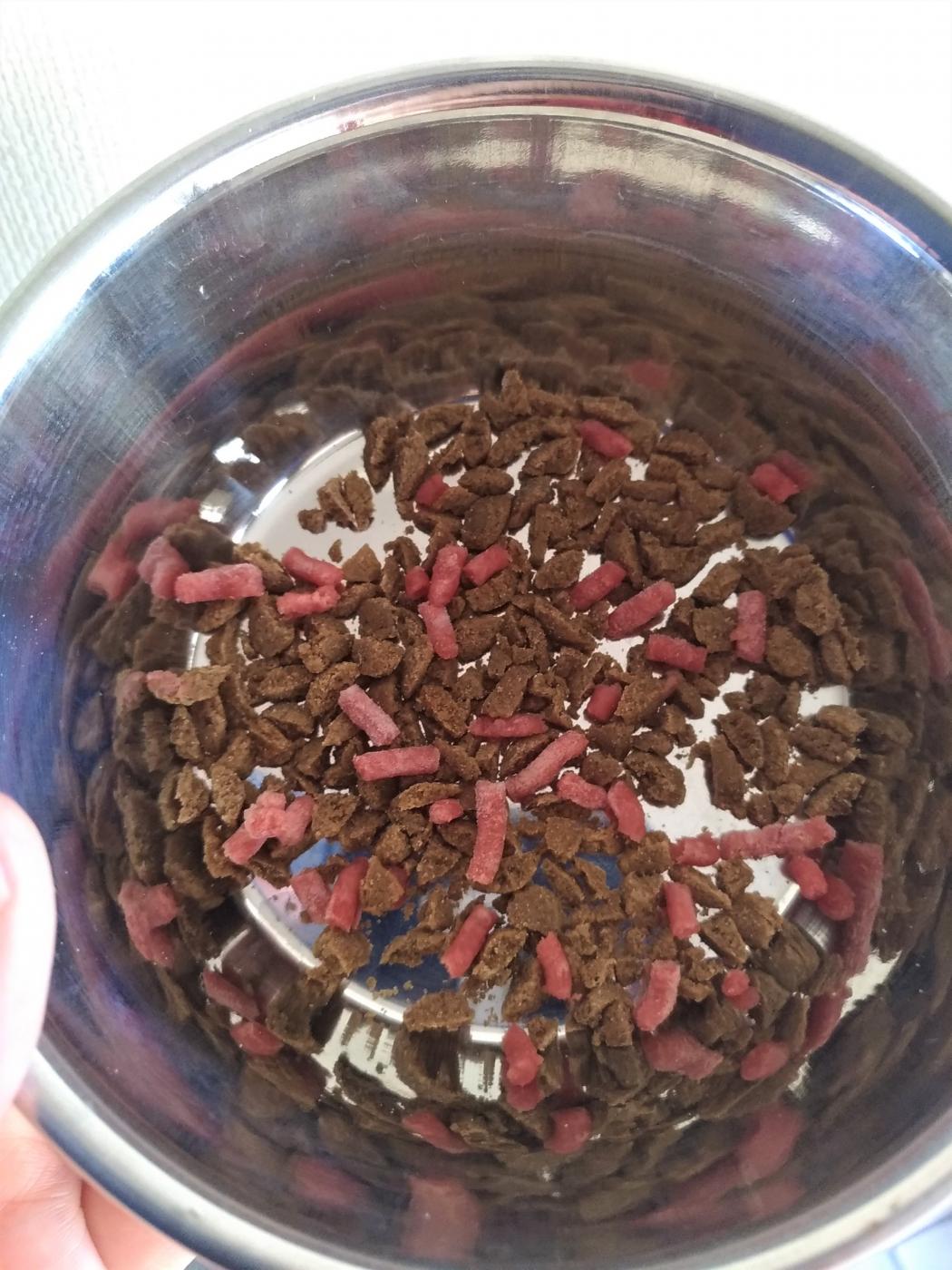与え始めは今までのドライフードに少しトッピングさせて、徐々に増やしていって様子を見ることしました。