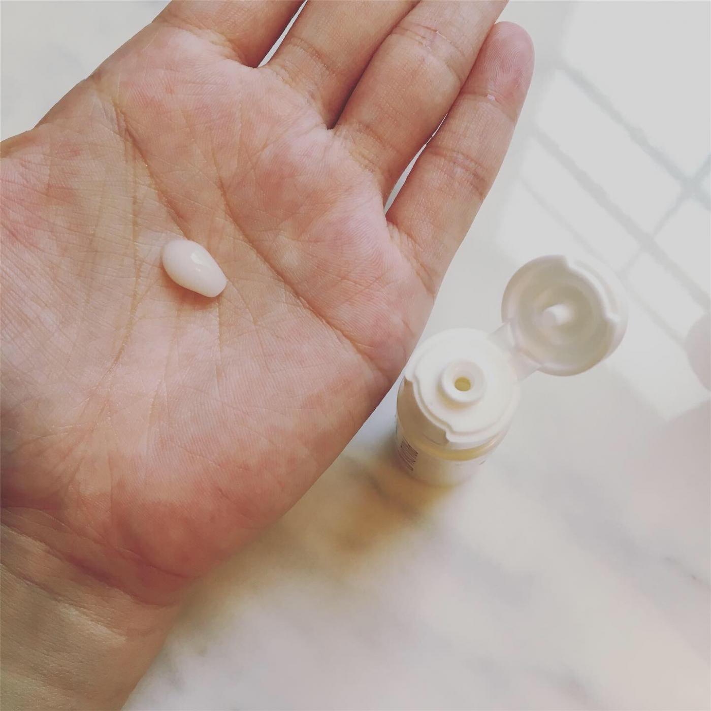 真っ白のやや固めのクリームですが、手のひらに乗せると体温で柔らかくなります☺️