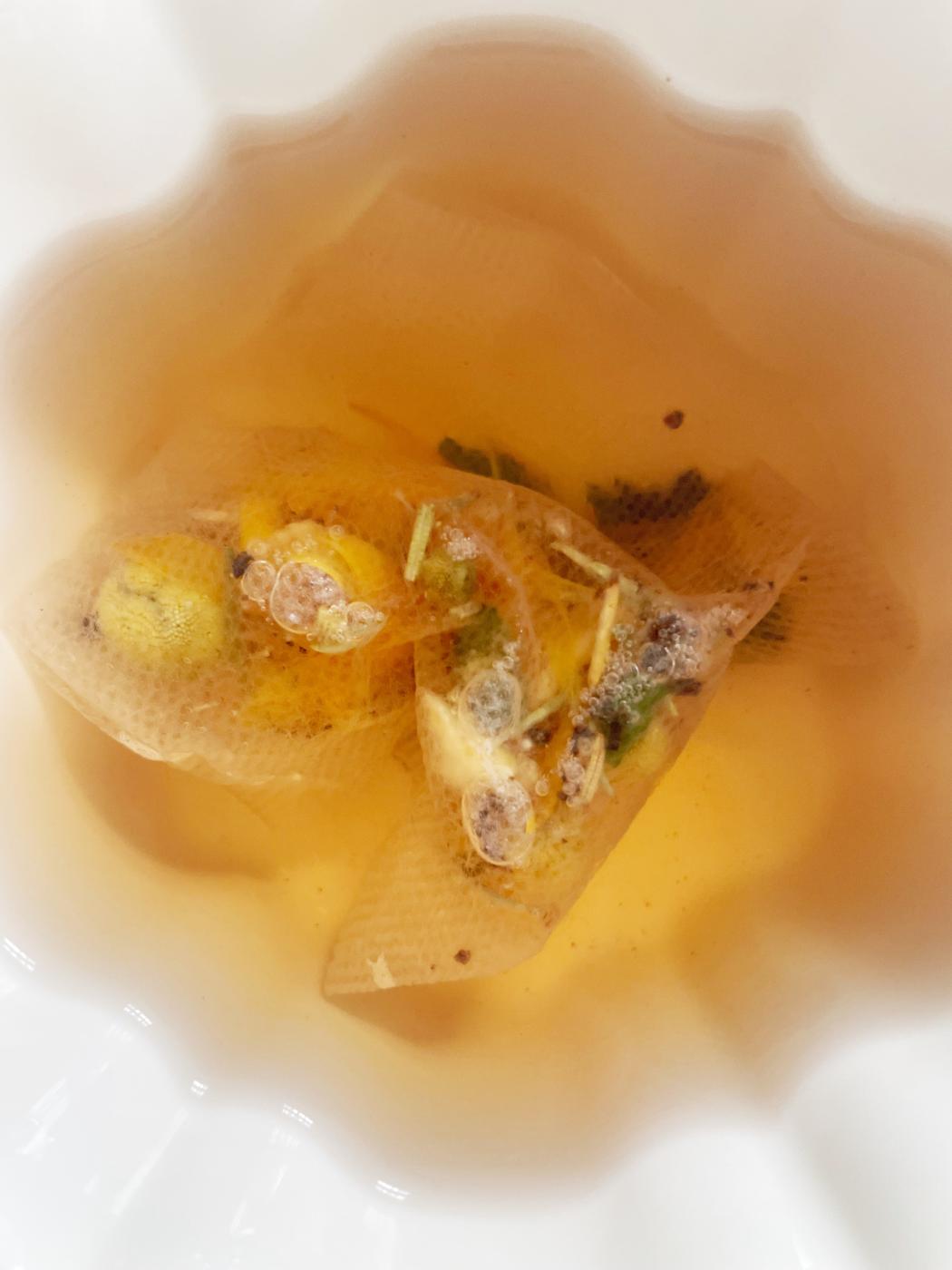 美しく澄んだお茶の中で、それぞれのハーブがしっかりと際立ち、疲れた心と身体にしみわたります。