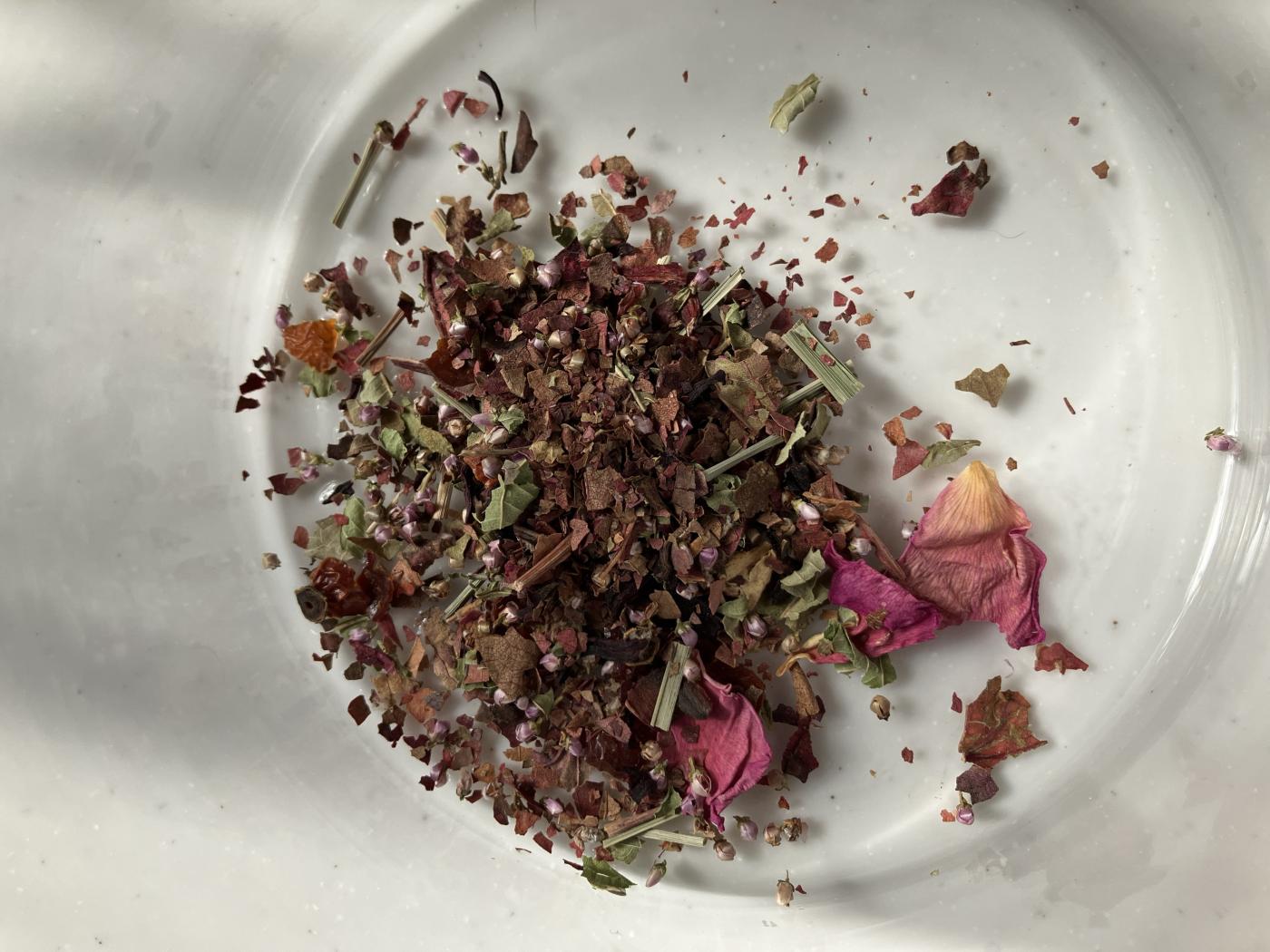 まず袋を開けた瞬間、ブレンドされたハーブの香りがふわっとして、「あ、これは絶対おいしいやつだ…」って思いました。色とりどりのハーブが入っていて、見た目からすでに気分が上がります。ポットにお湯を注いだら、すぐに鮮やかな赤い色が広がって、すごくきれいでびっくりしました。キッチンが一気に華やかになる感じで、見てるだけでもちょっと癒されます。