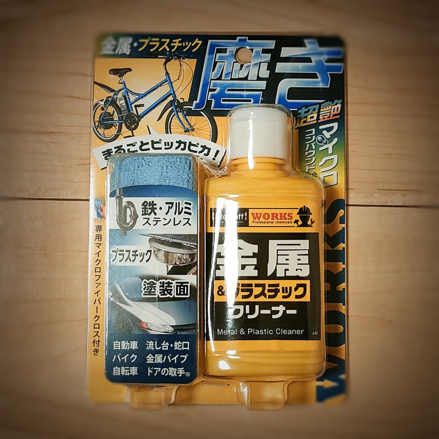 自転車のハンドルやボディー、水道管や蛇口、メッキ部などの金属やプラスチックのくすみを取り除き、輝きを蘇らせる専用クリーナーです。