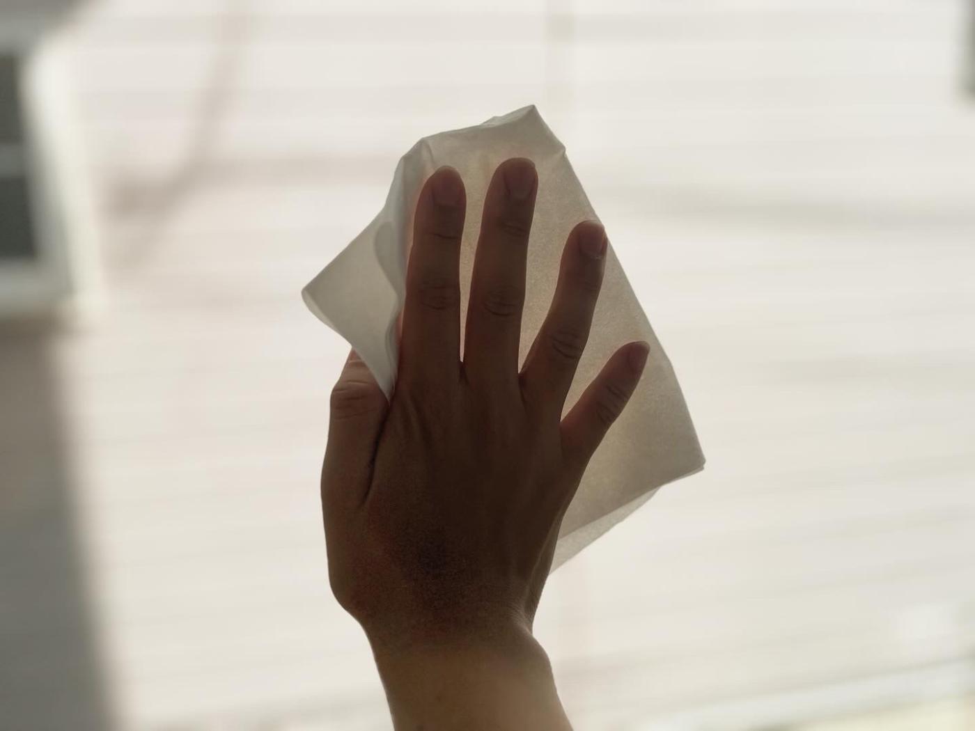 大きい窓ガラスとサッシ部分、1枚で余裕で拭けました!