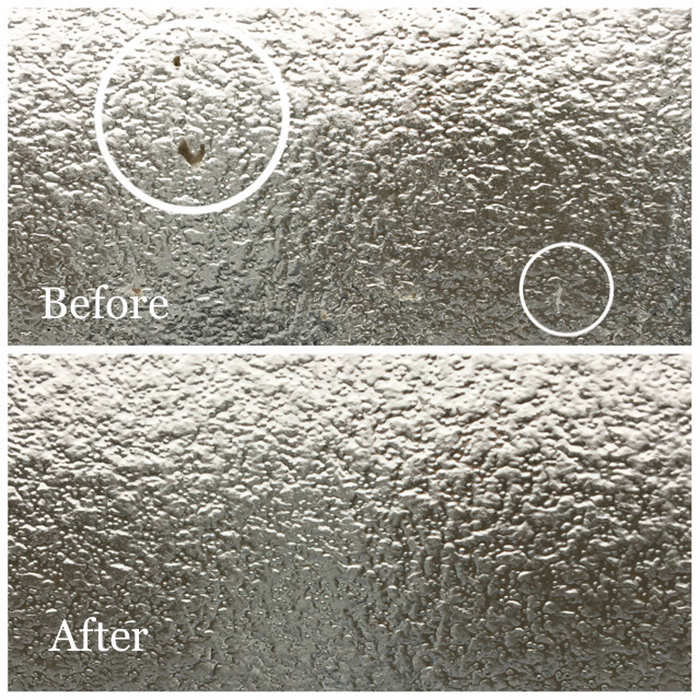 あんなに苦労して、こすってもびくともしなかった固い糊が、キレイに取れました。