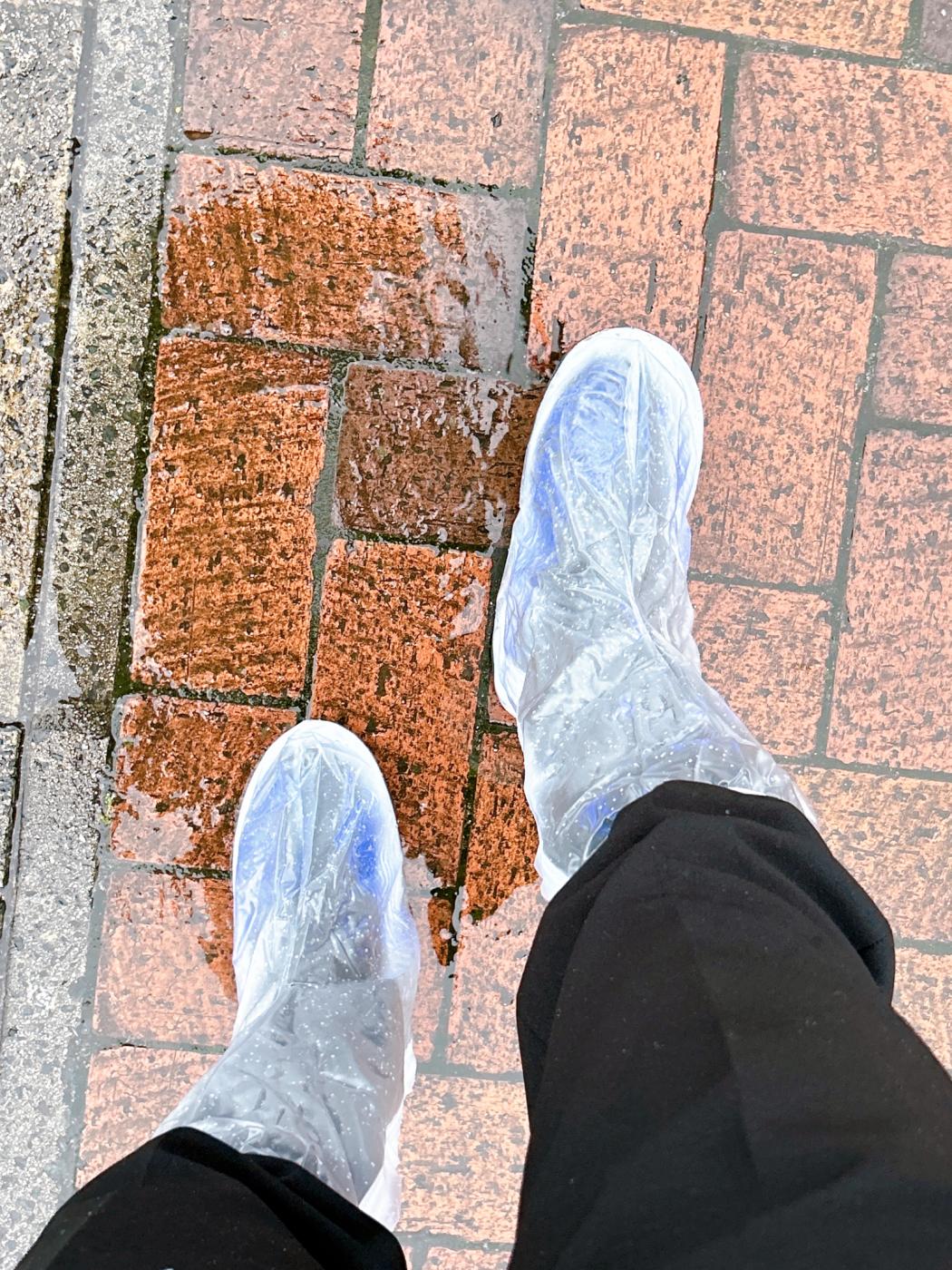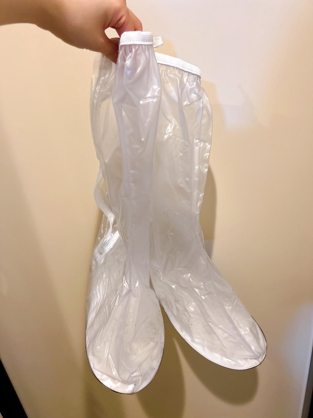 でもこのカッパの足があれば、全く靴が濡れることなく快適!ファスナー式でサッと履けるし、ずり落ち防止のゴム紐もあるので安心♪