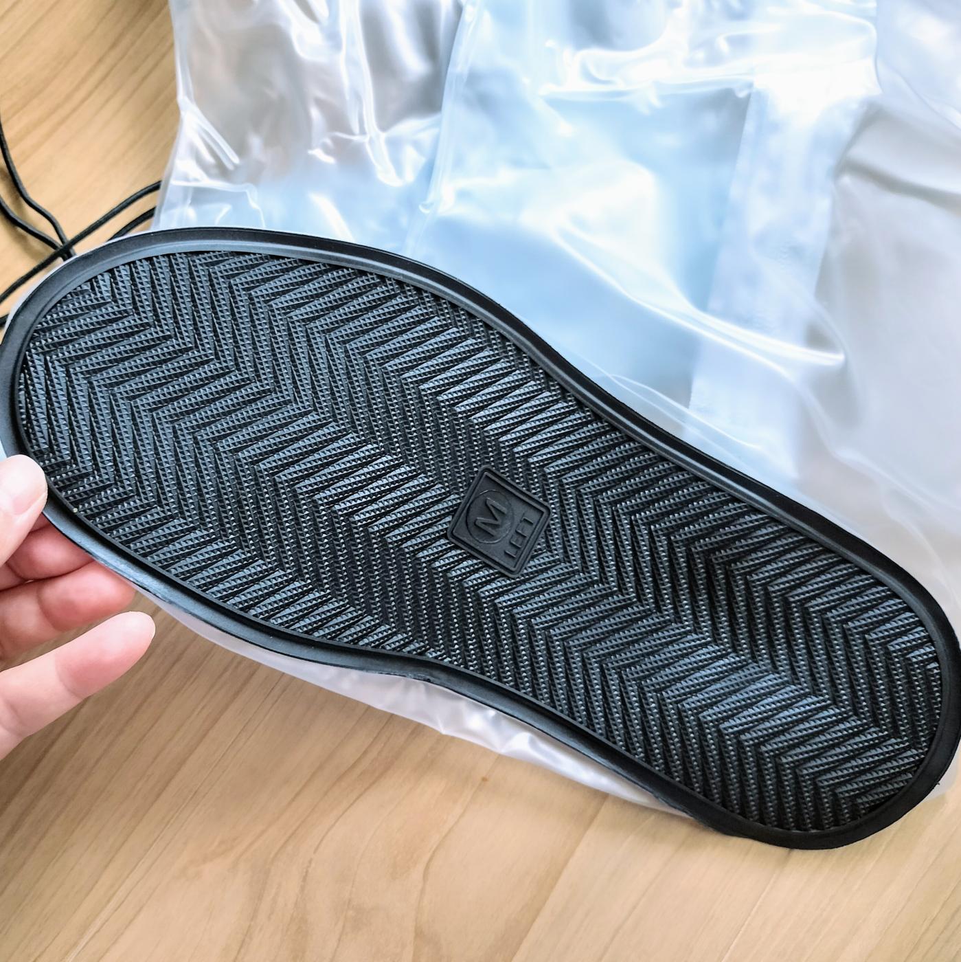 裏側は、靴底の凸凹加工により雨や雪道でも滑りにくい形状になってるよ!