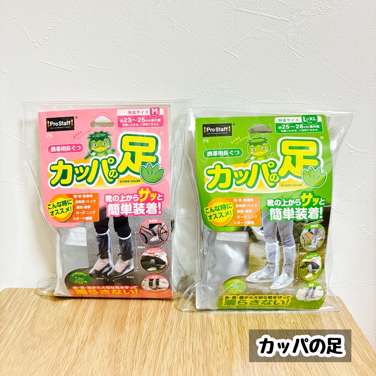 カッパの足は、いわゆる携帯用の長靴で、普段履いている靴の上からそのまま履けるタイプです🤗