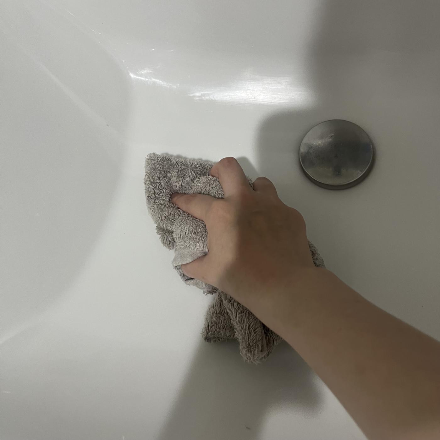 水分を完全に乾かす!たったこれだけの工程で、カビ、水あか、汚れの予防になるのめちゃくちゃ良くないですか?!本当に便利だなと感じました!今回洗面台の写真を載せていますが、キッチンのシンクやお風呂場の水気のたまりやすい、シャンプー等を置いている台の部分とかにも使いましたが、とても清潔な状態を保ってくれるので、とても重宝しています!素敵な商品をありがとうございました!