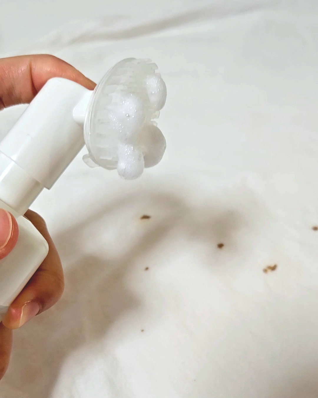 泡とブラシでケア。