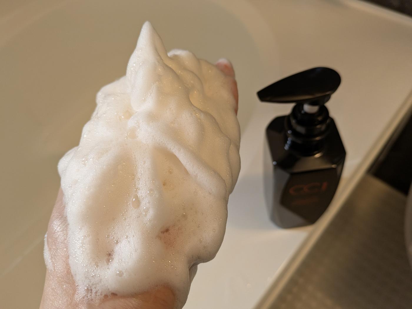 泡立てるとほんのりオレンジ色の泡になり、とっても軽くふわふわの泡♪