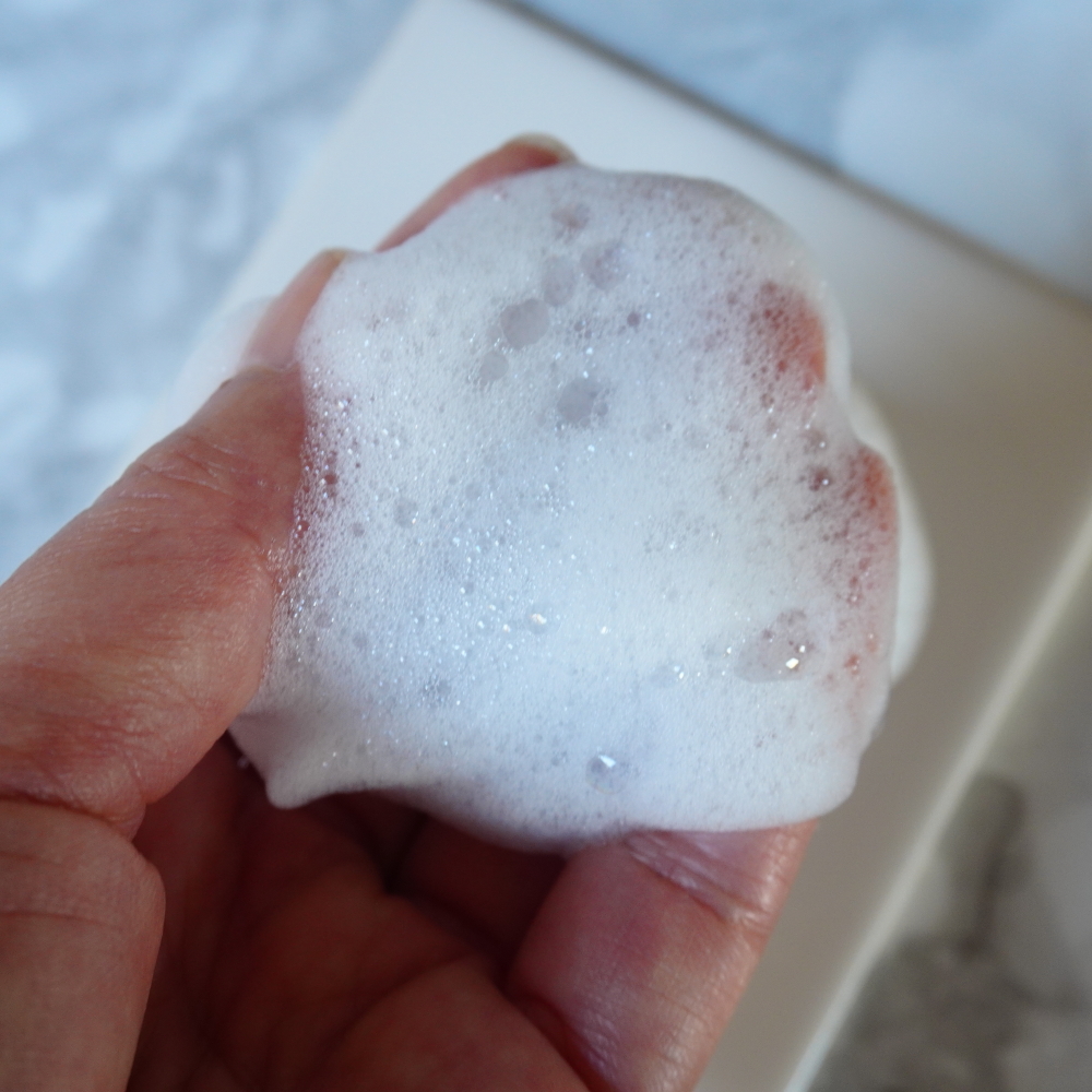 この泡で、全身を洗うと洗い上りがしっとり、もっちり。