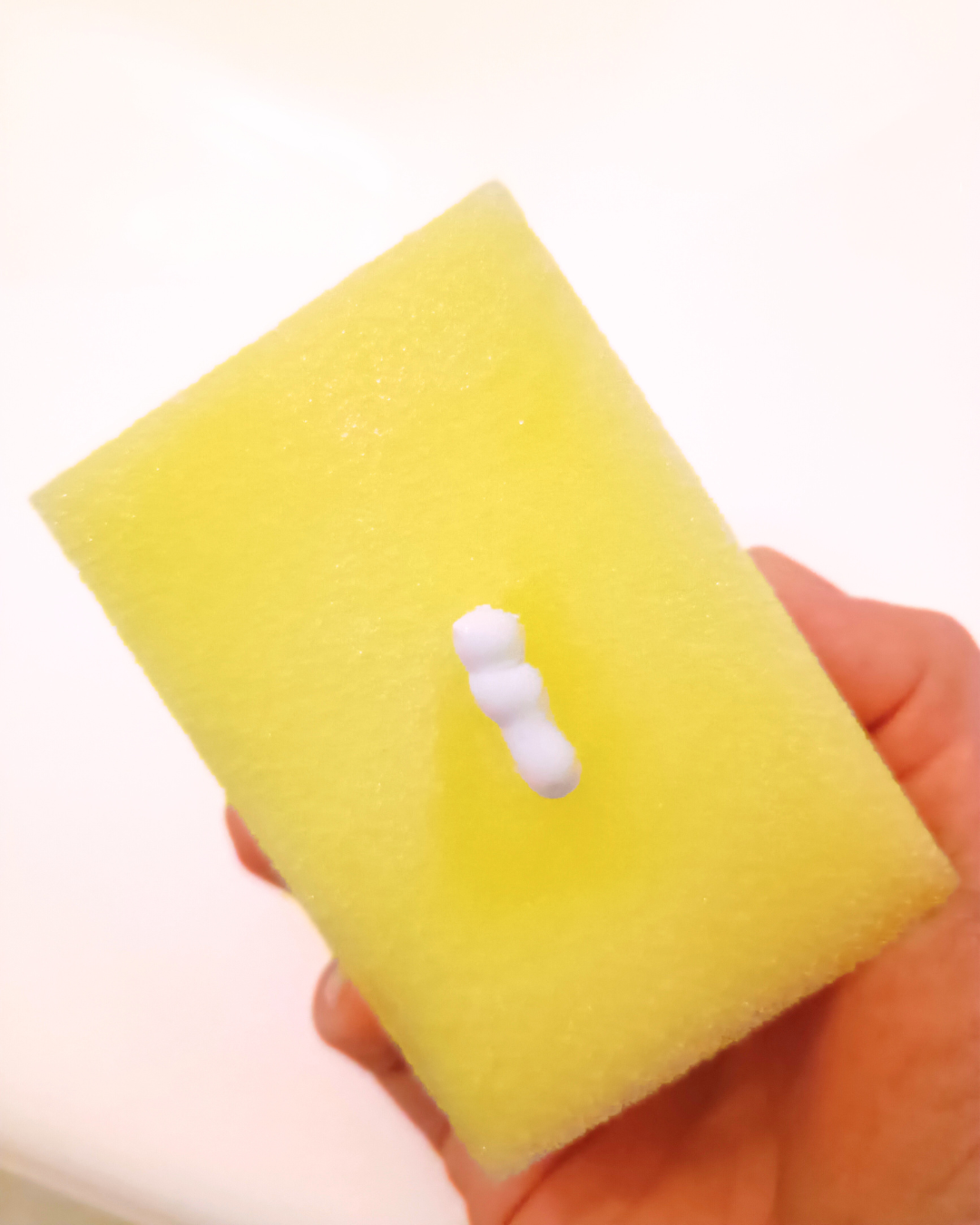 本体をよーく振って、付属のスポンジを軽く濡らしてから2cmほど出してゴシゴシ🧽🫧