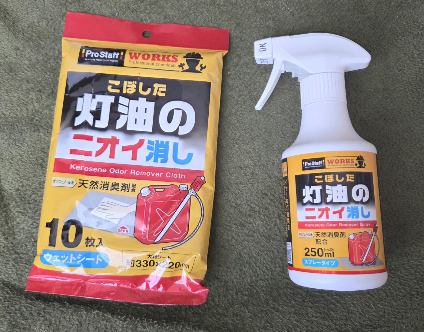 冬の間は石油ストーブを使うことが多く、灯油を補充するタイミングで少しこぼしてしまうことがあります。床や周辺に灯油が付くと独特のにおいが残りやすく、気になっていました。そんなときに使いやすかったのが、灯油のにおいに対応した専用アイテムのスプレーとウェットシートです。