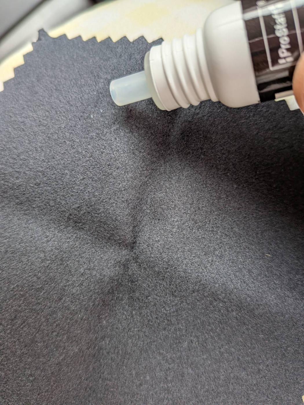 さっそく、付属のクロスに垂らしてみました。白っぽい液体で、においはあまり気にならないです。