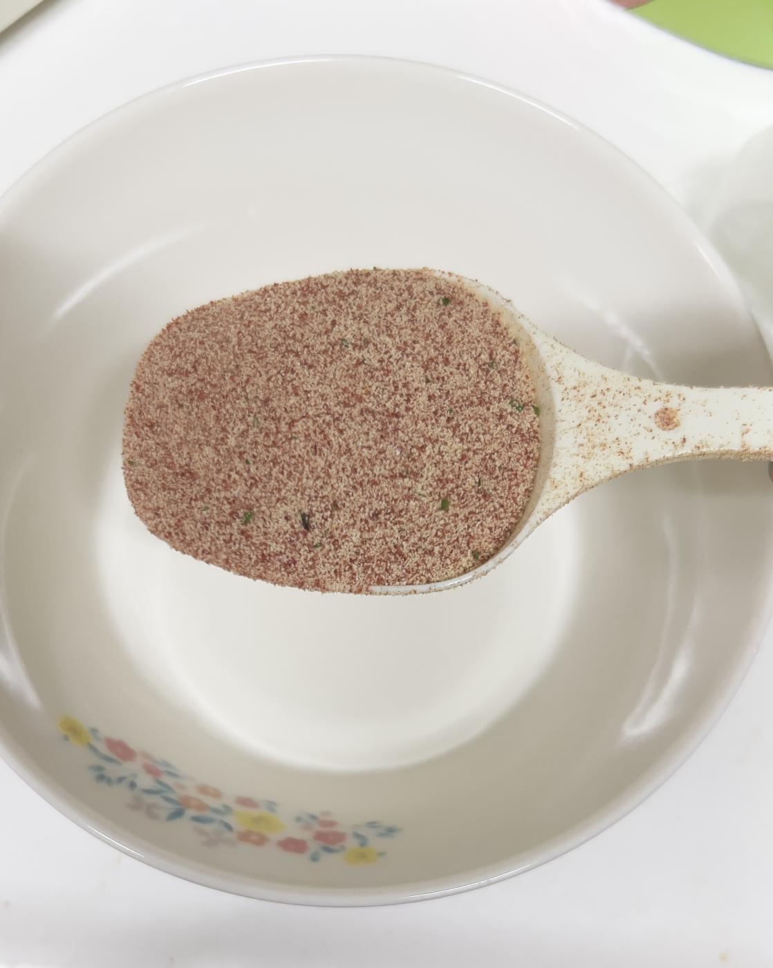 サラサラのパウダーで中に入っている付属のスプーンで図って出せます。