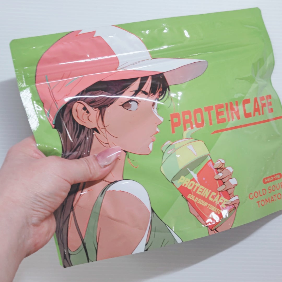 甘くなくて食事感覚で飲めるトマトスープ味のプロテインなんです。市販のトマトジュースにちょっと混ぜて飲んでいます。