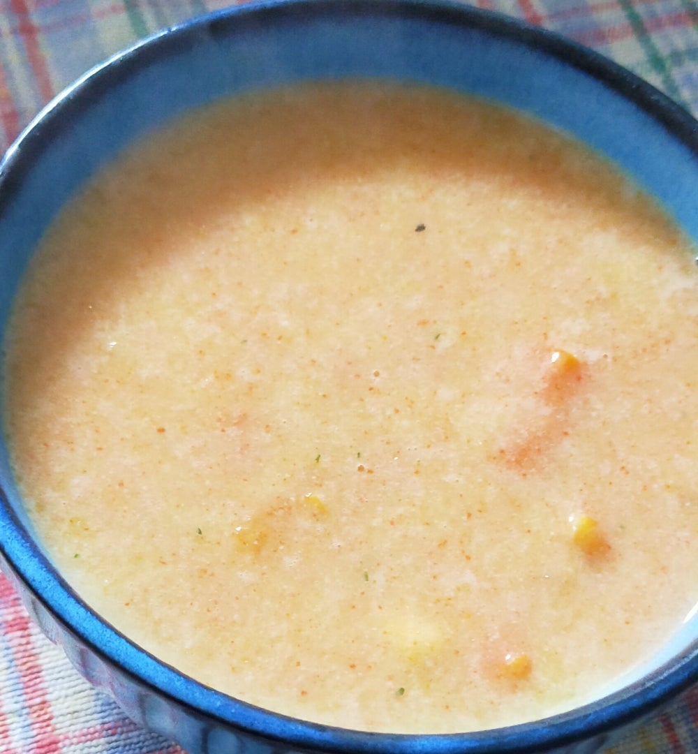 シチュー、チーズ、ニンジン、GOLD SOUP TOMATOを入れて食べてみたんだけど、酸味があって美味しい!